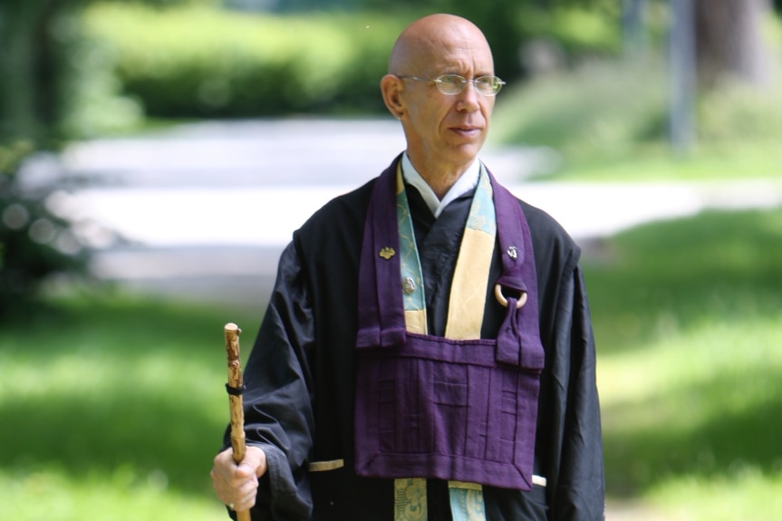 Claude AnShin Thomas bây giờ dạy ngồi thiền cho thường dân và cựu chiến binh, với lời dạy bất bạo động. Hình do CAT cung cấp.