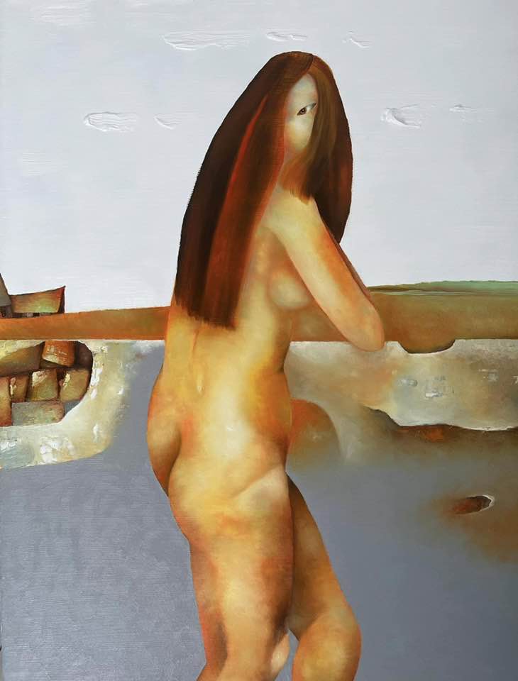 Người đàn bà bị đuổi khỏi làng, 80x60cm, sơn dầu trên bố, 2024