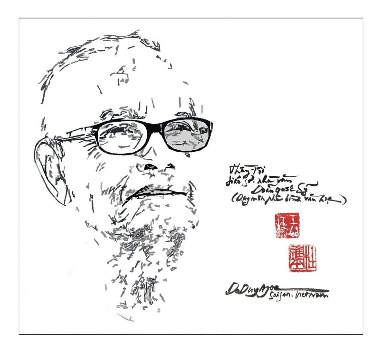 Cách đây 15 năm, vào những năm 2010 và sau đó, tôi có thực hiện một trang web về văn nghệ sĩ Việt Nam và thế giới. Bên cạnh phần giới thiệu thường đi kèm chân dung. Giáo sư, Nhà văn Doãn Quốc Sỹ là một trong những người đầu tiên tôi vẽ và giới thiệu. Sau này, một cô bạn học ở Đại học Sư Phạm có quen biết với chị Doãn Liên, con gái của Thầy, tôi nhờ cô bạn gởi Thầy bức chân dung. Tôi mong Thầy sẽ vui vì đã hơn nửa thế kỷ với biết bao biến cố, vẫn còn đứa học trò ngày xưa vẫn tha thiết nhớ đến Thầy.