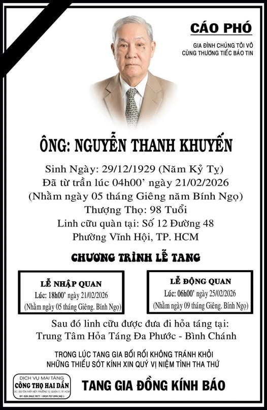 Giáo sư Nguyễn Thanh Khuyến vừa thất lộc ngày 21 tháng 2 năm 2026 tại Sài Gòn.